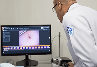 - A dermatoscopia digital ou mapeamento corporal permite uma análise mais precisa e organizada das lesões pigmentadas (pintas), comparando eventuais modificações da mesma, ou mesmo a presença de novas lesões.